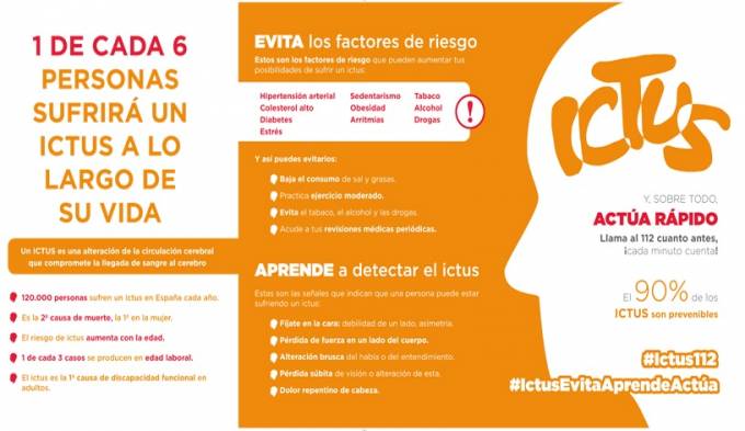 Estos son algunos de los datos que se han dado a conocer durante la presentación de la campaña. Durante el acto, que se enmarca en las actividades del Día Mundial del Ictus (29 de octubre). "El 90% de los casos de ictus se podrían evitar con una adecuada prevención", según ha indicado Antonio Guzmán, director de Promoción de la Salud de Fundación Mapfre, quien ha señalado que "cuando hablamos de prevención nos dirigimos tanto a personas que no lo han sufrido hasta el momento, con medidas como llevar hábitos de vida saludables, como para evitar que el ictus se repita, ya que el hecho de haber sufrido un ictus es un factor de riesgo en sí mismo para sufrir un segundo".