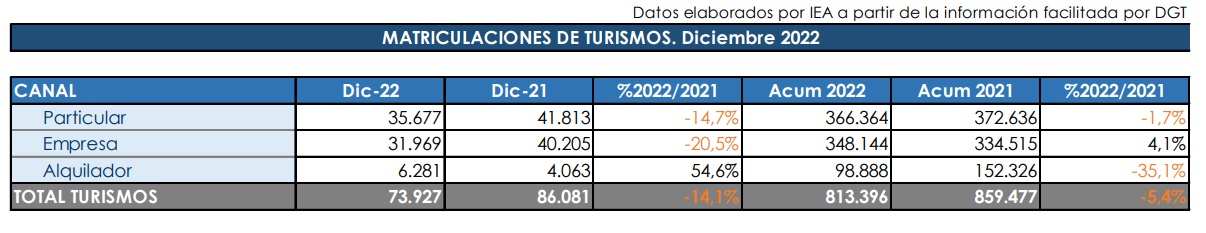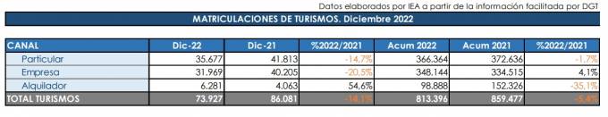 2022 cierra con una caída del 5,4% en las matriculaciones