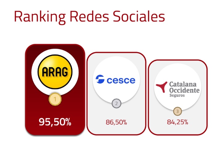 Finalmente en la categoría de RRSS, encabeza el ranking ARAG, seguida de Cesce y Catalana Occidente. En esta edición se ha puesto el acento en el análisis de parámetros como la existencia de ubicación de la entidad en la bio de Twitter o la de posts fijados en el feed de Instagram, entre otros.