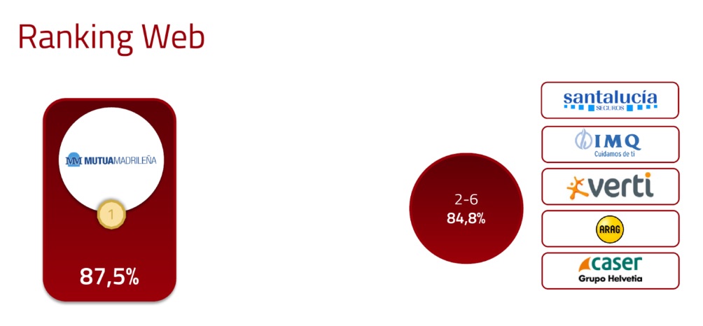 En la categoría web, también encabeza la clasificación Mutua Madrileña y se produce un empate en la segunda posición entre 5 entidades: Santalucía Seguros, IMQ, Verti, Arag y Caser. Entre las conclusiones más llamativas de esta edición del ranking destaca el hecho de que solo una de las 72 compañías analizadas ofrece el contacto con un humano a través de un chat.