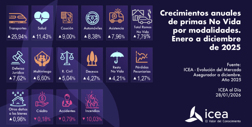 ¿Qué 3 modalidades de No Vida crecieron más y menos en 2025?