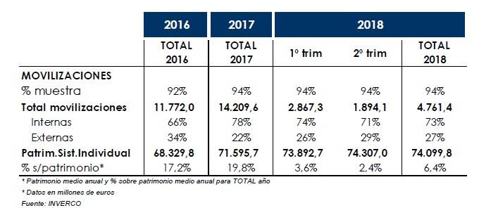 4.761,4 millones de euros, un 6,4% del patrimonio medio del primer semestre del año de los Planes individuales, han cambiado de Plan en 2018. El 73% de estas movilizaciones hasta junio se han realizado entre Planes de la misma gestora, mientras que el 27% restante se debe a traspasos entre Planes de diferentes gestoras, según datos facilitados por Inverco.