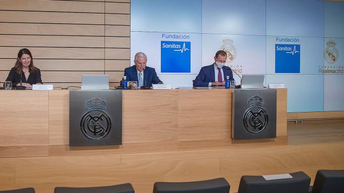 La directora general de Fundación Sanitas, Yolanda Erburu, y el director de Relaciones Institucionales del Real Madrid, Emilio Butragueño, han sido los encargados de ratificar por 13ª temporada este acuerdo.