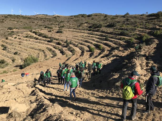 84 voluntarios de DKV plantan 1.190 árboles en una zona quemada en Sos del Rey Católico