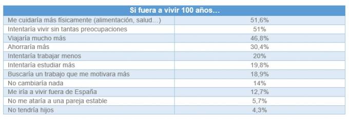 Llama la atención en el estudio, que los españoles, si supiesen que vivirían más de 100 años solo 3 de cada 10 pensarían en el ahorro.