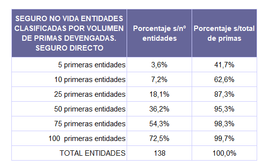 Además, las 25 primeras entidades de Vida comercializan la práctica totalidad de primas de este ramo (93%), mientras que en No Vida alcanzan el 88%.
