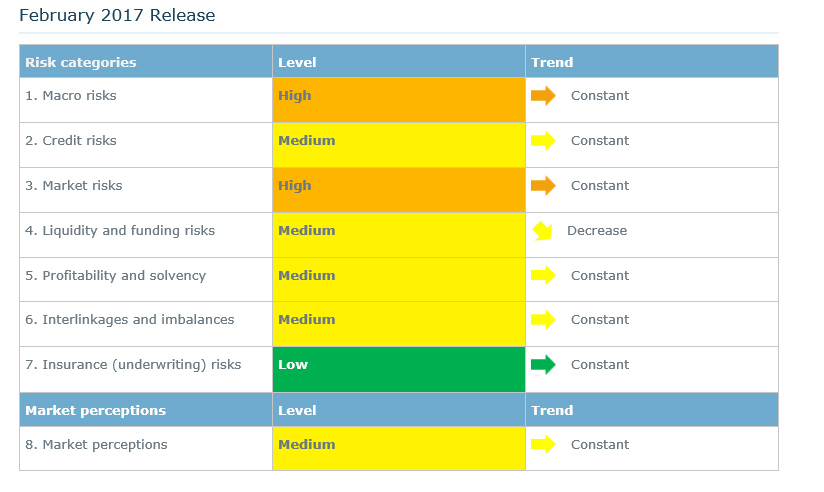 Eiopa ha publicado su primer mapa de riesgos y vulnerabilidades (Risk Dashboards) desde la implantación de Solvencia II y hasta el tercer trimestre de 2016. El regulador señala que su llegada significó cambios importantes en la cuantificación de los requerimientos de capital, pero añade que su transformación ha sido “suave”.