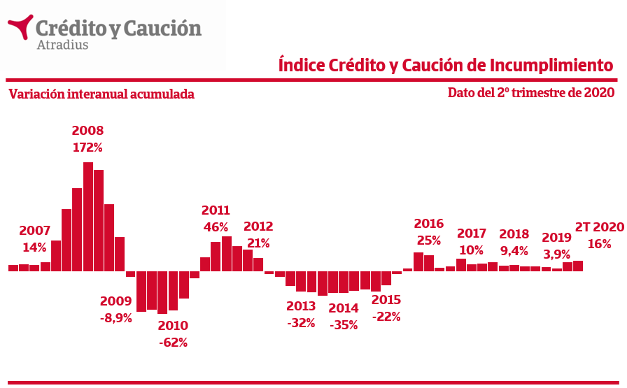 Los niveles de impago comercial han crecido un 16% en España en el segundo trimestre de 2020, según el Índice Crédito y Caución de Incumplimiento, por lo que se refleja así lo que está sufriendo el tejido empresarial ante el entorno económico provocado por el coronavirus.