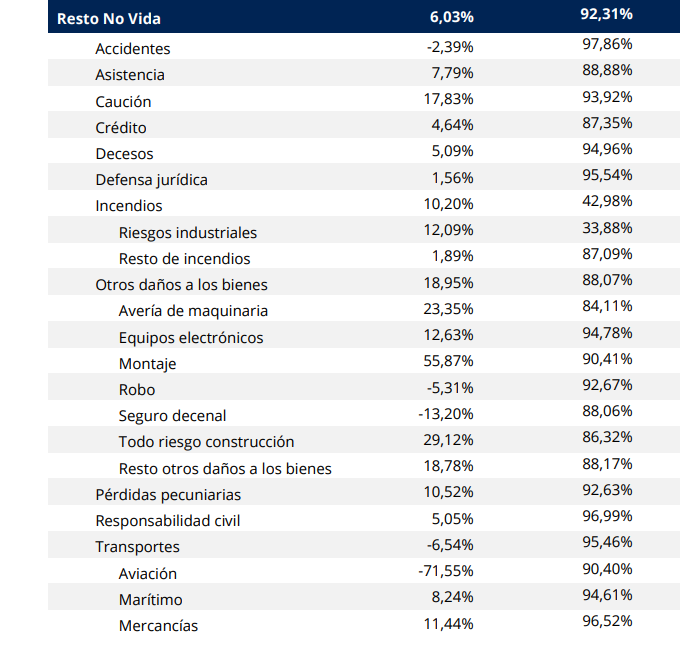 Además, los seguros ligados al mundo empresarial y que se engloban dentro de Resto No Vida, firmaron 3.366 millones con una mejora de algo más del 6%.