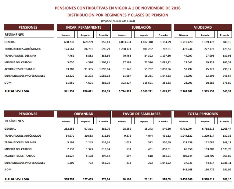 En síntesis, el conjunto del Sistema público cuenta hoy con 9.458.366 pensiones contributivas, un 1,17% más respecto al año pasado. Más de la mitad, 5.774.824 concretamente, son por Jubilación; 2.363.082 corresponden a Viudedad; 941.558 a Incapacidad Permanente; 338.793 a Orfandad y 40.109 a Favor de Familiares.