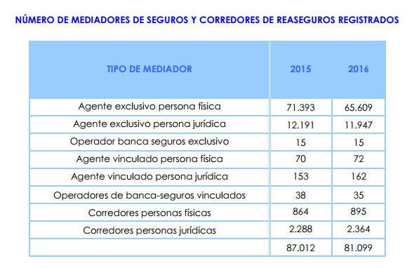 Por su parte, el número de mediadores de seguros también ha visto disminuir su cifra en el último año. Según los datos del
