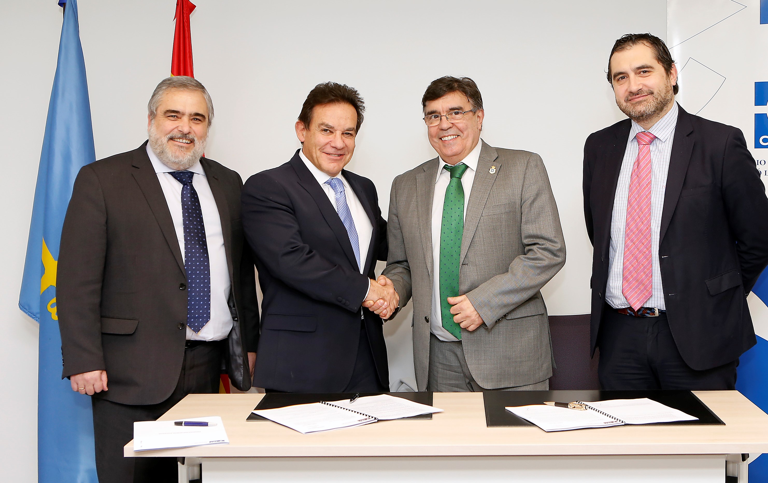 El Colegio de Odontólogos de Asturias ha contratado con A.M.A. una póliza colectiva de Decesos a partir del 1 de enero de 2017, de la que se beneficiarán 843 colegiados asturianos. El acuerdo lo han firmado Javier González, presidente del Colegio, y Alfonso Villa, consejero de la mutua, en presencia del responsable de Colectivos de A.M.A., Miguel Ángel Vázquez, y el delegado de A.M.A. en Asturias, Javier Rodríguez.