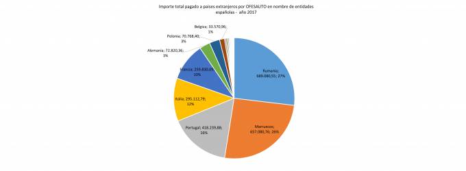 Ofesauto pagó en el ejercicio 2017 un total 2,56 millones de euros por accidentes causados por vehículos españoles en el extranjero. Rumanía, Marruecos y Portugal fueron los principales países beneficiarios de los pagos (sumaron en total el 69%).