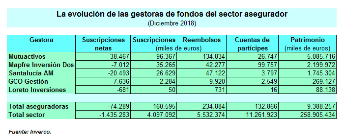 El patrimonio de las aseguradoras en fondos de inversión se redujo un 4,5% en 2018