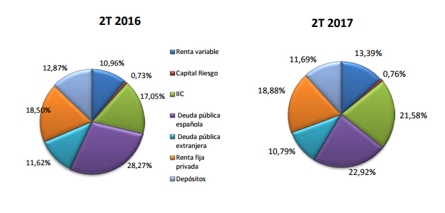 En relación a la estructura de las inversiones de los Fondos de Pensiones, la renta fija representa más de la mitad de la cartera y la deuda pública española es la de mayor peso. Sin embargo, apunta el informe, se ha ido reduciendo esta inversión a favor de instituciones de inversión colectiva. A finales de marzo de este año casi el 23% está invertido en deuda pública española y el 21,6% en IIC.