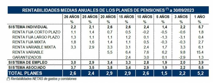 En cuanto a la rentabilidad, a 1 año se sitúa en el 5,2%, mientras a largo está en el 2,6% a 26 años para el total de Planes; en el medio, también en el 2,6% a 10 años y en el 2,9% a 15 años.