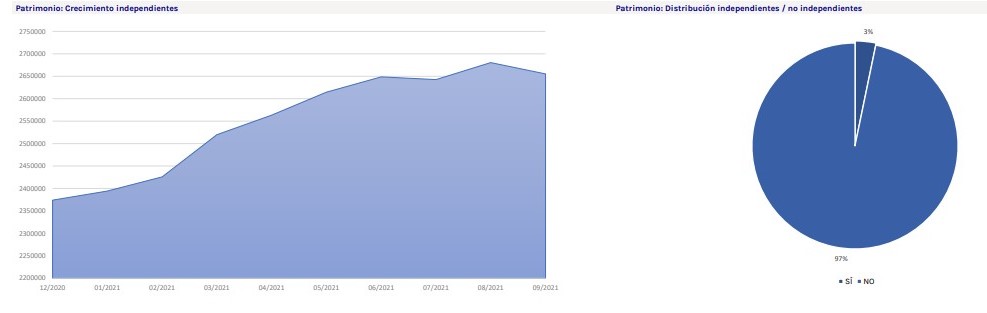 Hasta septiembre, el patrimonio de Planes de Pensiones asesorado por entidades de gestión independiente ha aumentado un 11,85%, ascendiendo a 2.655 millones de euros, según datos facilitados por VDOS. Esta cifra supone el 3,24% del total de Planes de Pensiones individuales.