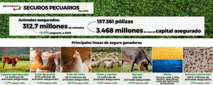 El Plan 2020 de seguros pecuarios de Agroseguro cierra con un capital asegurado por valor de 3.468 millones de euros, más de 312 millones de animales asegurados y con más de 157.000 pólizas suscritas, un 5,4% más respecto al año anterior.