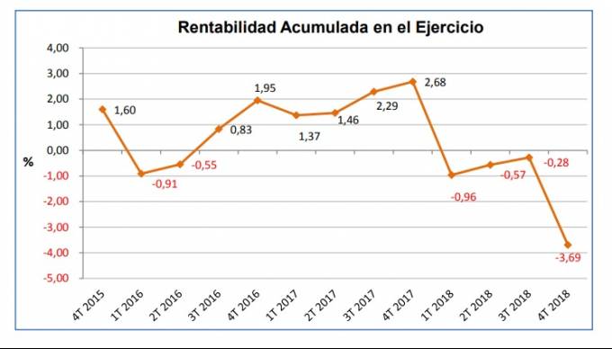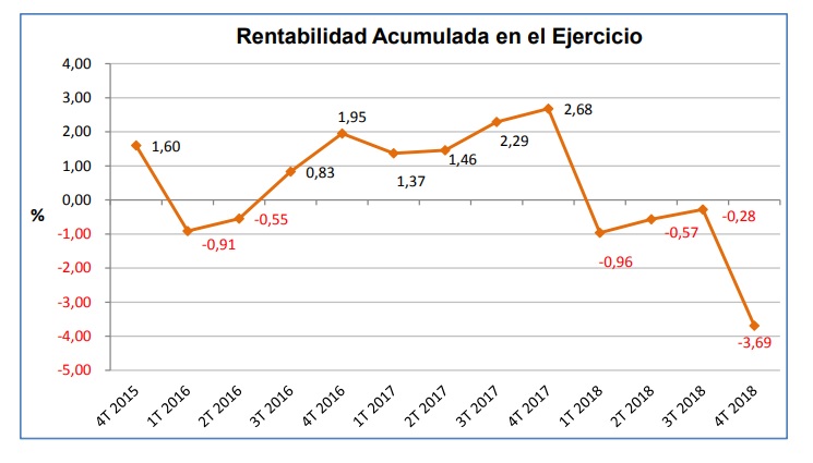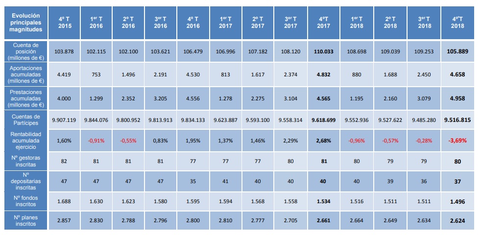 La rentabilidad de los Planes de Peniones a cierre del cuarto trimestre de 2018 cayó un 3,69%. Diferenciando por sistemas, los Planes de Empleo han sido los menos dañados, con un descenso del 3,01% frente a los Individuales cuya caída ha llegado al 4,01%, según los datos del Informe Trimestral de la DGSFP correspondiente al 4º Trimestre de 2018.