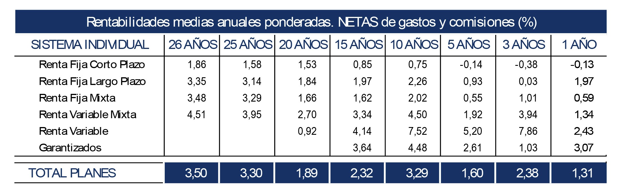 Los Planes de Pensiones registran rendimientos positivos en todos los plazos