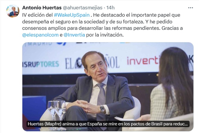 Manifestó también, en la IV Edición del Wake Up, Spain! Organizado por El Español, que "los clientes están animosos de reinvertir sus ahorros para aprovechar este último ciclo de tipos altos". Añadió que "a corto y medio plazo, va a haber bastante actividad. Serán momentos muy interesantes para seguir invirtiendo y para seguir sacando productos de Ahorro desde el mundo