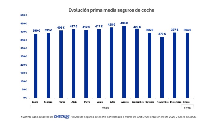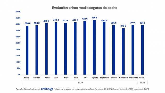 "En Check24 comenzamos el año siguiendo muy de cerca la evolución de la prima media del seguro de coche y observamos cómo enero mantiene una tendencia estable, con un ligero descenso respecto a diciembre, situándose de nuevo por debajo de los 400 euros. En este 2026, nuestro consejo para que los conductores puedan ahorrar sigue siendo el mismo: comparar precios y coberturas, porque las diferencias entre aseguradoras continúan siendo muy significativas", ha señalado Timm Sprenger, CEO del comparador.