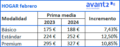 En cuanto a Hogar, la prima media aumentó algo más de un 12% en comparación con el mismo mes del año anterior. En la modalidad estándar, atendiendo a las pólizas emitidas a través de Avant2 Sales Manager, la prima media alcanzó los 252 euros, mientras en la premium lo hizo un 10%.