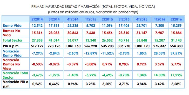 El regulador de seguros confirma que el volumen de primas hasta junio ha aumentado un 17,29% respecto al mismo periodo de un año antes con 31.143 millones de euros. El negocio de Vida, con una mejora del 37,5% ha liderado estos datos; por su parte, No Vida creció un 2,77%.