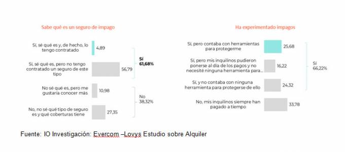 Más del 66% de los españoles que tienen una vivienda en propiedad alquilada han tenido alguna experiencia negativa con el pago de la renta por parte de los inquilinos, según la I Encuesta sobre el Impago del Alquiler en España realizada por la insurtech Lovys. El informe indica que en el 16,2% de los impagos, los inquilinos se pusieron al día con los pagos. De igual forma, una cantidad similar (67%) responde que han tenido malas experiencias al alquiler una vivienda, ya sea con el pago, daños a la vivienda o actos vandálicos; aun así, el principal obstáculo para alquilar (63%) es la poca garantía del cobro de la renta.