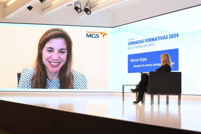 La psiquiatra y escritora Marian Rojas impartió la conferencia 'Recupera tu mente, reconquista tu vida' en la que la experta dio las herramientas para que los asistentes -empleados de MGS, mediadores y clientes- aprendan a gestionar su salud mental. "Para poder recuperar la estabilidad y alcanzar la felicidad, es fundamental que cada persona realice un diagnóstico de autoconocimiento en el que analice cómo es, cuáles son sus factores de estrés y cómo reacciona y se comporta ante ellos. Solo así podemos llegar a comprendernos y aceptarnos, algo vital, ya que comprender es aliviar", apuntó.