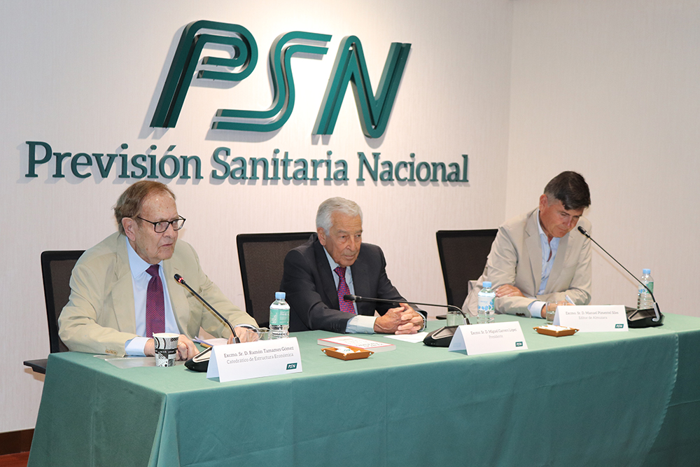 Ramón Tamames, catedrático de Estructura Económica y candidato a la presidencia del Gobierno en la Moción de Censura presenta por Vox este mismo año, ha inaugurado el nuevo ciclo de conferencias 'Encuentros PSN. Debatir desde valores' en el Palacio de Gamazo, sede central del Grupo Previsión Sanitaria Nacional (PSN).
