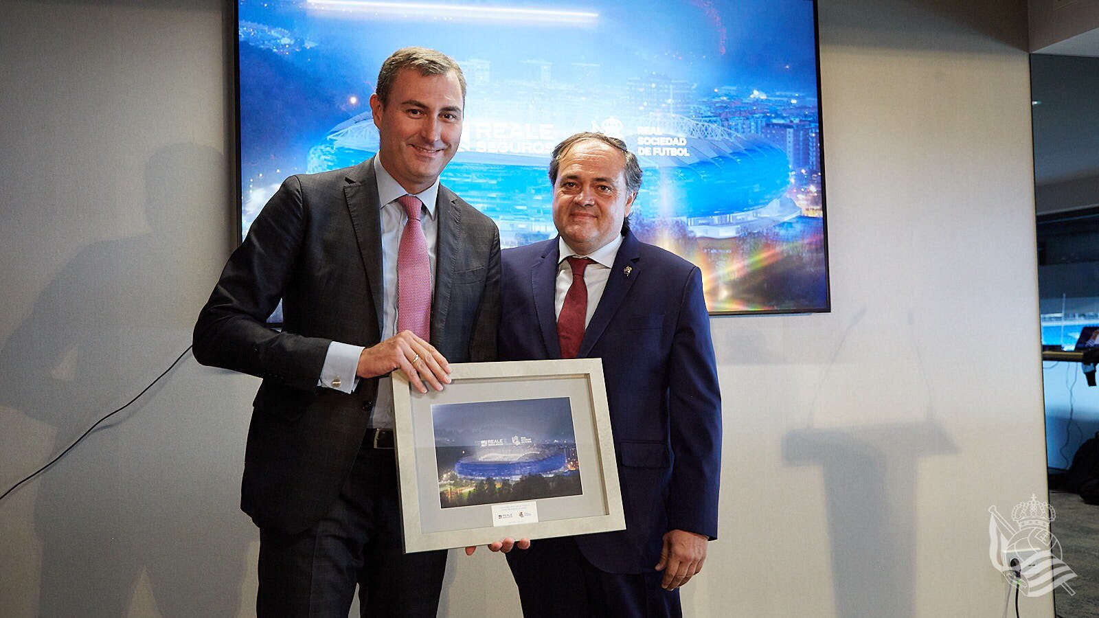 "Quiero agradecer a Reale Seguros su apuesta decidida por la Real Sociedad. Reale Arena es el nombre de esta instalación tan importante para el futuro de la Real Sociedad. No hemos podido elegir un mejor compañero de viaje que Reale Seguros para recorrer esta nueva etapa. Una compañía solvente con la que venimos trabajando conjuntamente desde 2012. En estos 7 años se ha forjado una relación sólida, sincera, basada en el conocimiento mutuo y en la confianza de dos instituciones que comparten mucho más que un acuerdo de patrocinio, compartimos valores", ha subrayado Jokin Aperribay, presidente de la Real Sociedad.