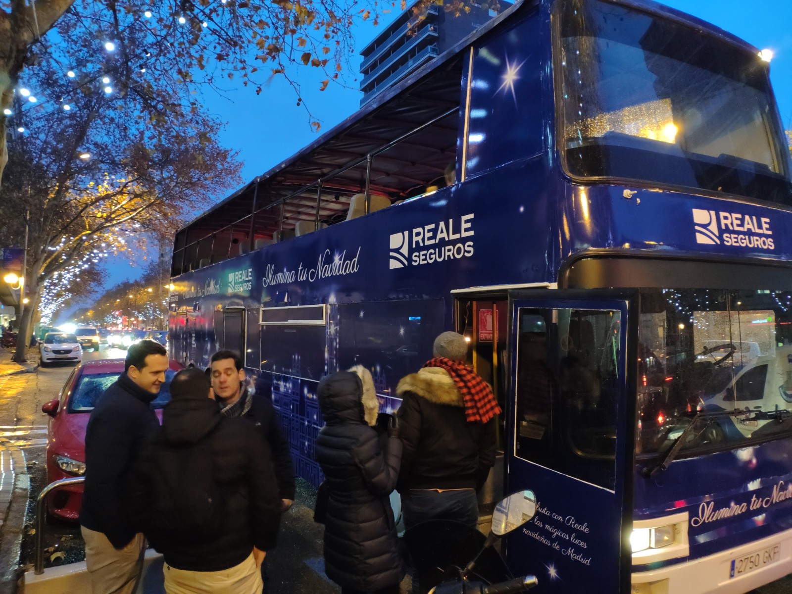 El autobús navideño de Reale Seguros recorrerá las calles de Madrid para enseñar a sus ocupantes el alumbrado de la capital. Empleados de la compañía, clientes de la aseguradora y brand lovers podrán vivir la experiencia sin colas ni coste alguno. Bajo el lema 'Ilumina tu Navidad', pasará por las calles iluminadas de la ciudad hasta el próximo 23 de diciembre.