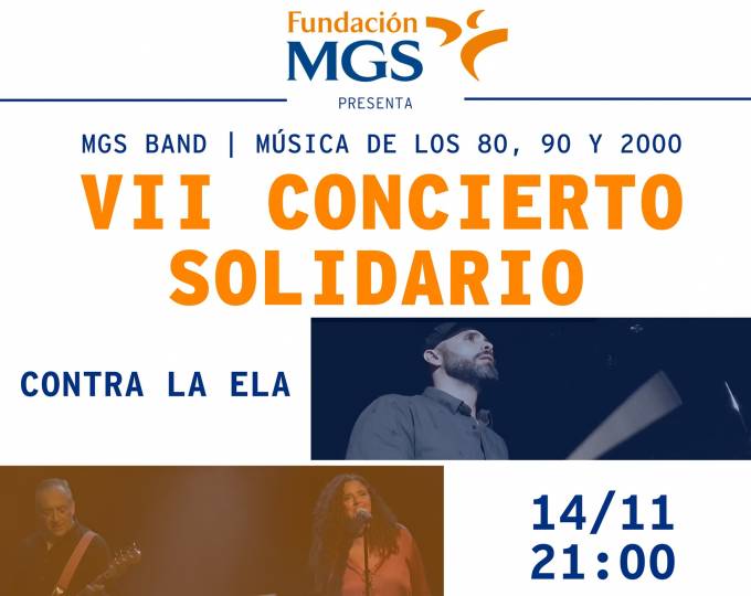 La Fundación MGS organiza el 14 de noviembre en la Sala La Casa del Loco (Zaragoza) su VII Concierto Solidario, cuya recaudación se destinará a ARAELA, la Asociación Aragonesa de Esclerosis Lateral Amiotrófica. Esta entidad tiene por objetivo prestar apoyo a los pacientes de ELA y sus familiares, así como fomentar la sensibilización y la investigación acerca de la enfermedad.