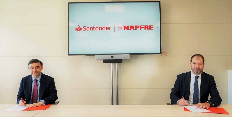 La red comercial de Mapfre ofrecerá el renting de vehículos del Santander a sus clientes particulares, empresas y autónomos gracias al acuerdo entre ambas organizaciones firmado por Antonio Román, director de Empresas e Instituciones de Santander España, y Raúl Costilla, director general comercial de Mapfre España.