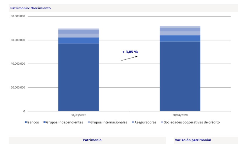 Han sido los bancos los que han registrado las mayores captaciones netas, con 45 millones y mantienen su posición mayoritaria de cuota de mercado con un 81,82%, Caixabank ha sido la entidad con mayores captaciones netas, con 28 millones y continua líder en patrimonio con 16.223 millones y una cuota de un 22,57 %, seguido de BBVA, con 13.470 millones y una cuota de un 18,74% y Santander con un 13,95%.