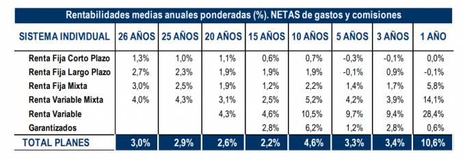La rentabilidad de los Planes de Pensiones de renta variable se situó en el último mes en el 28,4% y sigue tirando de la rentabilidad total de los Planes que se queda este mes en el 10,6%, casi 1 p.p. menos que en agosto, según datos facilitados por Inverco. Sin embargo los Garantizados que a 10 años tienen una rentabilidad del 6,2%, este mes se quedan tan solo en el 0,6% y solo las categorías de Renta Fija presentan rentabilidades nulas o ligeramente negativas.