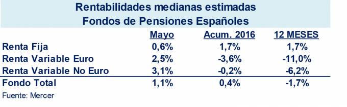 La rentabilidad de los Fondos de Pensiones de Empleo fue del 1,1% en mayo