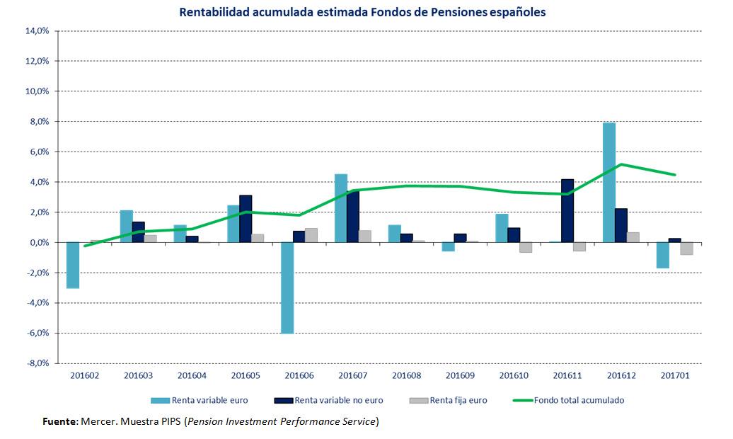 El servicio de medición de Fondos de Pensiones PIPS de Mercer ha señalado que la rentabilidad mediana estimada de