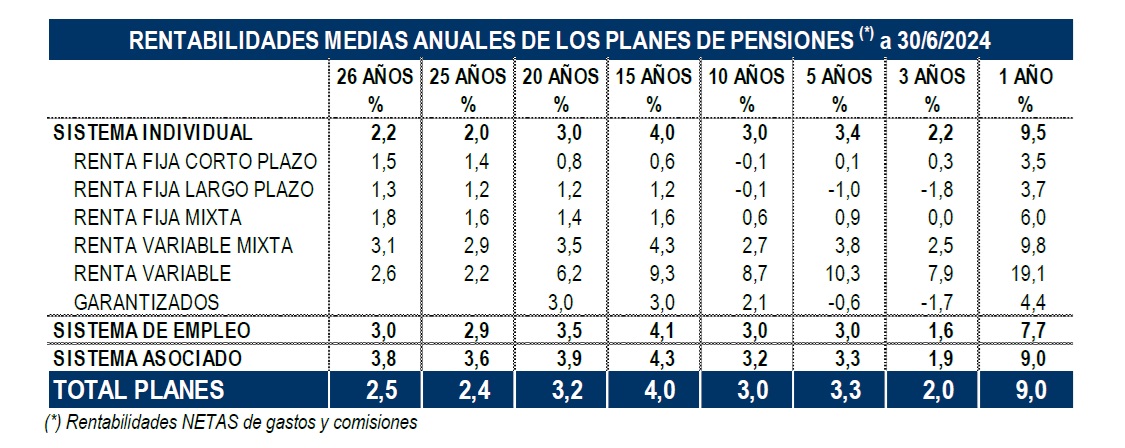 La rentabilidad de los Planes de Pensiones Individuales sigue en torno al 9% en junio