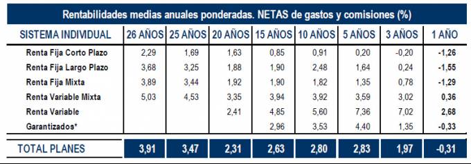 La rentabilidad de los Planes de Pensiones, en negativo