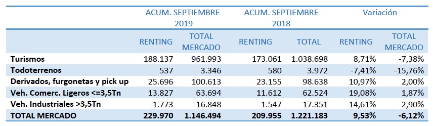 Agustín García, presidente de la Asociación, ha señalado a la vista de estos resultados "que los datos de matriculaciones de renting correspondientes al último mes de septiembre son espectaculares al registrar un incremento del 45,84%. Por otro lado, el crecimiento acumulado se mantiene y seguimos ganando peso en el mercado. El automóvil está viviendo una época marcada por grandes cambios y el renting está aprovechando la oportunidad para convertirse en la respuesta que muchos usuarios de movilidad necesitan. Las esperanzas de cerrar un gran año para el renting están fundadas en los datos y también en la tendencia social que busca formas alternativas a la propiedad tradicional".