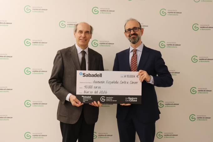 Bernardino Gómez Aritmendi, director general de BanSabadell Seguros Generales, Vida y Pensiones, ha entregado por 9º año consecutivo un cheque por valor de 40.000 euros al doctor Laureano Molins, presidente de la Associació Contra el Càncer de Barcelona. La donación va dirigida a dos proyectos concretos:  el 'Proyecto Integral a Mujer con Cáncer' y el proyecto de investigación 'Medicina de precisión para el tratamiento del cáncer de pulmón de células pequeñas' del doctor Pedro Rocha, en el Centro Nacional de Análisis Genómico – CNAG.