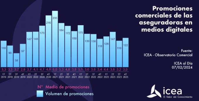 En la 'batalla' por convertirse en líder del ramo de No Vida, Salud ya adelanta a Autos en algo. Este ramo concentró el mayor número de promociones web durante el pasado año, adelantando a Autos que tradicionalmente lideraba esta comparativa, según los datos de ICEA. En términos generales, las acciones promocionales se contrajeron ligeramente este año y el número de acciones de las compañías pasó del 3,9 en 2022 a 3,5 en 2023. El mayor número de estas acciones se produjeron en los dos primeros trimestres del año.