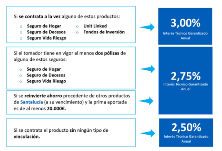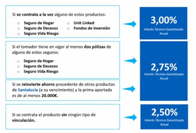En todos estos casos se establece una vinculación de 2 años, aunque se permite el rescate tras el primer año. En ese caso, el tipo de interés técnico garantizado es del 0,50% anual.