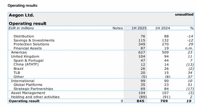 El beneficio neto de Aegon al cierre del primer semestre registra 606 millones de euros, frente a unas pérdidas de 65 millones al cierre del primer semestre del pasado año. El resultado operativo se ha elevado un 19% más que el año precedente alcanzando 845 millones. Unos datos que para la compañía reflejan "el crecimiento del negocio y la mejora de Estados Unidos".