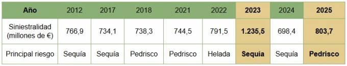 El seguro agrario registró en 2025 una siniestralidad de 804 millones, la 2ª más alta de su historia