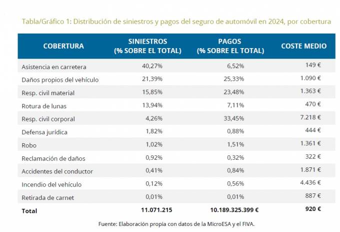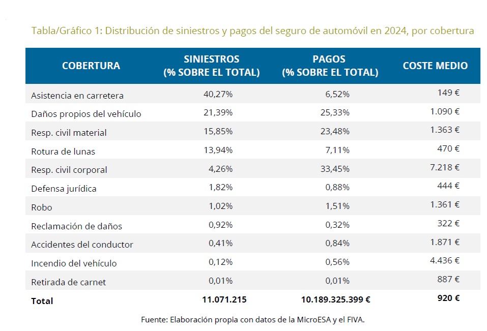 La cobertura con mayor coste medio es la responsabilidad civil corporal, que alcanza los 7.218 euros por siniestro. Aunque su frecuencia es mucho menor que la de otros incidentes —apenas representa el 4,3% del total de percances— su peso económico es determinante: absorbe más de un tercio del importe abonado por el seguro de automóvil en concepto de indemnizaciones. También destacan por su elevado importe los incendios de vehículos, con un coste medio de 4.436 euros. Estos resultados muestran cómo algunas coberturas que no figuran entre las más populares en contratación sí se traducen en incidentes de gran severidad cuando ocurren.