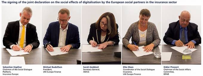 El seguro europeo firma una declaración sobre los efectos sociales de la digitalización