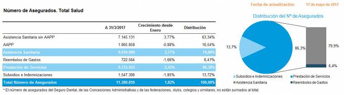 Salud roza los 11,3 millones de asegurados hasta marzo, con un incremento del 2%